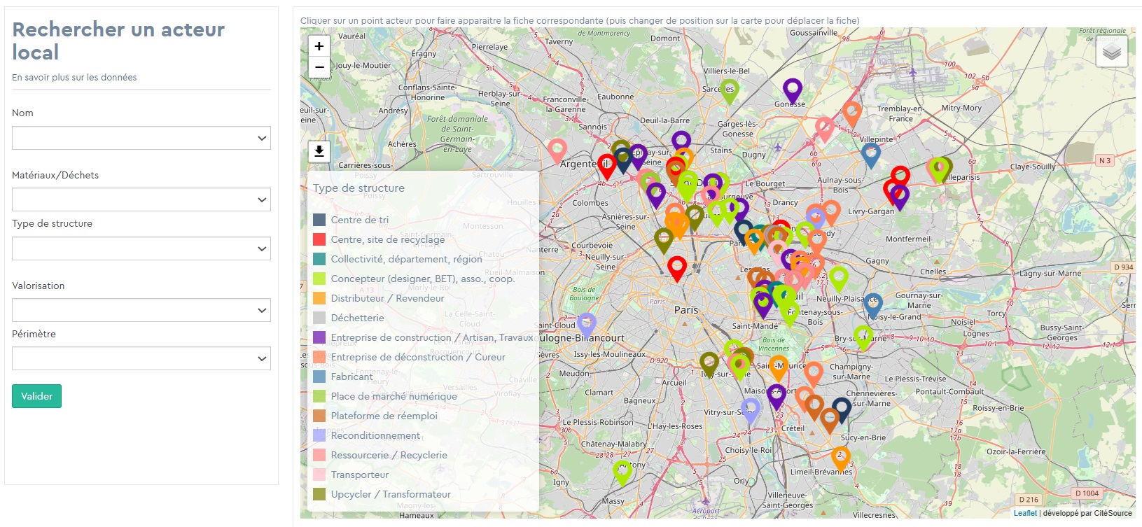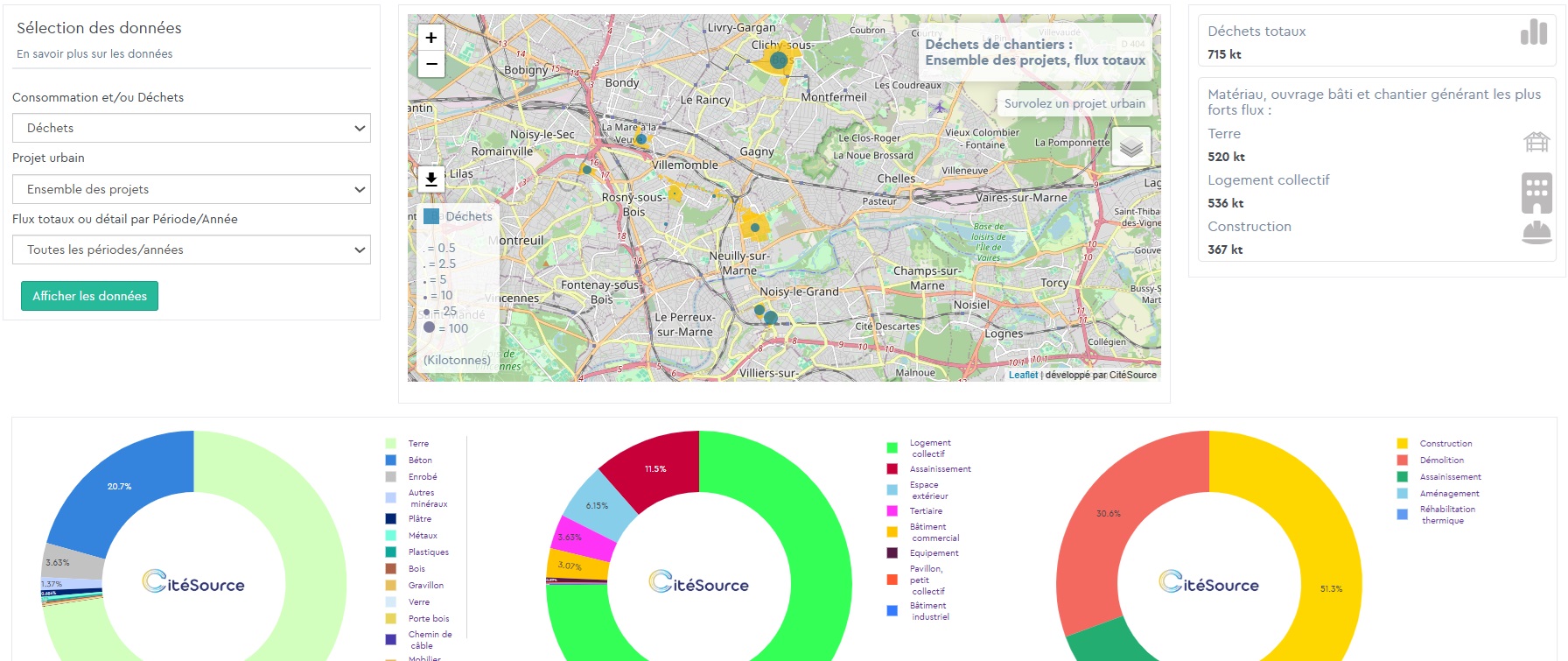 Données produites par CitéSource en 2025 dans le cadre de la mission Etude d'identification des gisements de matériaux du BTP et AMO Economie Circulaire sur 3 chantiers pilotes Grand Paris Grand Est, avec la contribution de Cycle Up et Urbanova pour les données PEMD et acteurs